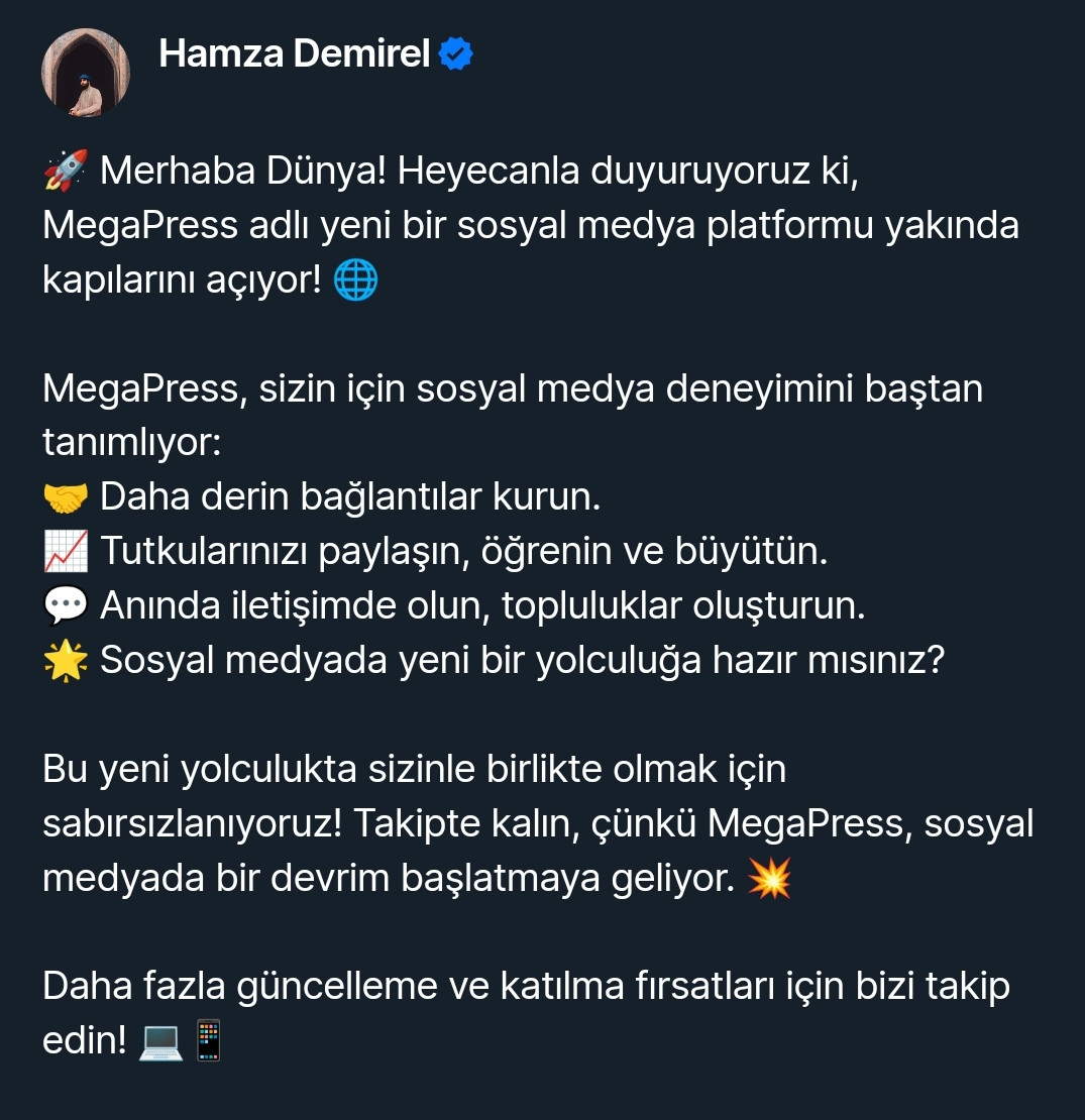 #MegaPress #YeniBaşlangıç #SosyalMedyaDevrimi